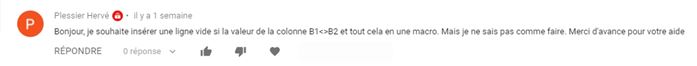 Aujourd’hui je vous propose de répondre à la question posée par Plessier Hervé dans l’espace de commentaires sur la chaîne YouTube, qui souhaite savoir comment insérer une ligne vide lorsqu’une valeur contenue dans une cellule vient à être modifiée. Nous verrons pour cela qu’une simple macro-commande va nous permettre de réaliser cette opération.