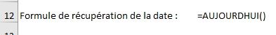 En effet, si nous voulons obtenir la formule qui permet d’obtenir la date du jour et que nous tapons celle-ci, Excel va nous afficher le résultat de la fonction de la cellule :