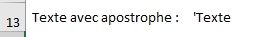 Si cette fonctionnalité est très pratique lorsque nous souhaitons convertir un nombre en un texte, l'inconvénient c'est que si nous souhaitons faire commencer un texte par l'apostrophe, celui-ci ne sera donc pas affiché…