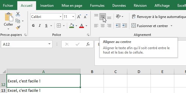 Pour modifier ce comportement, cliquez simplement sur les boutons correspondant dans le groupe Alignement.