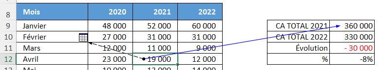 Pour nous en rendre compte, il suffit de modifier l’une des valeurs de la colonne « 2022 » :
