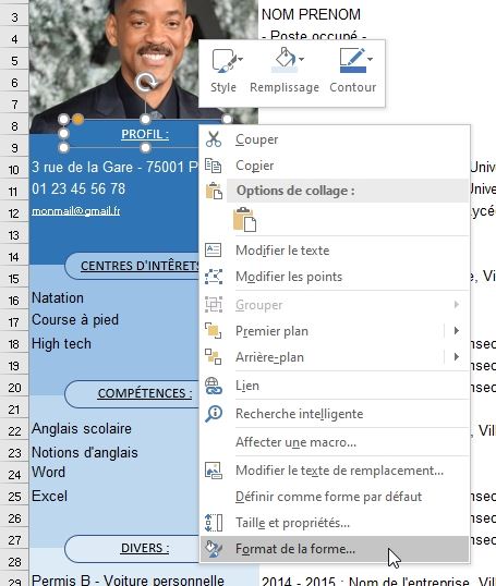 Pour supprimer la bordure, nous effectuons un nouveau clic droit > Format de la forme :