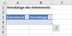 Et voilà, notre tableau est maintenant prêt à être alimenté à partir des différents évènements importants intervenants sur la feuille de calcul.