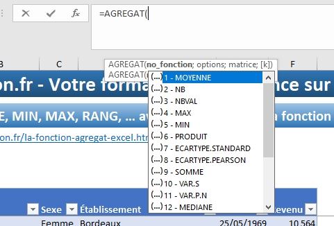 Comme nous pouvons le constater ici, c’est en fonction de la valeur que nous allons attribuer à cet argument, que le type de la fonction AGREGAT() sera déterminé.