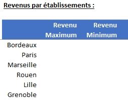 Ensuite, sur la colonne située juste à droite, nous allons souhaiter calculer le revenu minimum de chaque établissement.