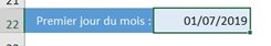 Pour obtenir le premier jour du mois, il suffit de remplacer le paramètre jour par « 1 ».