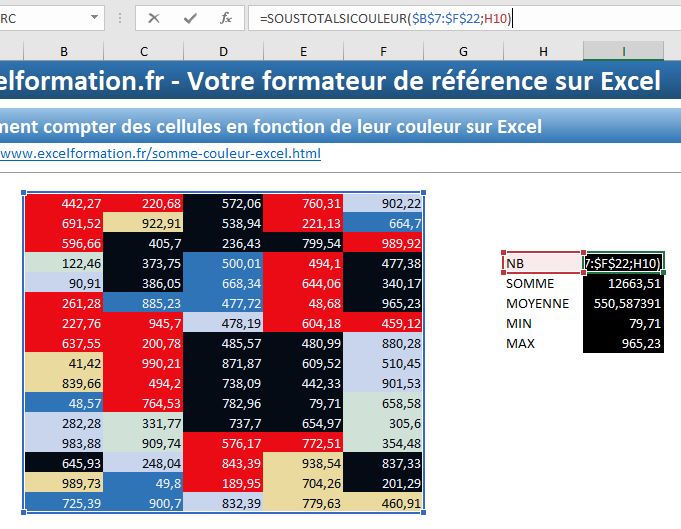 5. Comment effectuer des calculs en fonction de leur couleur sur Excel ? (SOMME, MOYENNE, NB, MAX, MIN…)