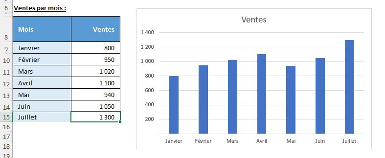 Pour nous en rendre compte, il suffit d’ajouter une ligne en dessous du tableau, avec les ventes de juillet :