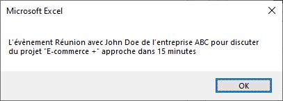 - Ne manquez plus aucun événement : « XlCalendrier by excelformation.fr » intègre des notifications d'événements pour vous alerter à l'avance. Vous pouvez facilement configurer les conditions de notification et « XlCalendrier by excelformation.fr » affichera des messages appropriés pour vous rappeler vos événements importants.